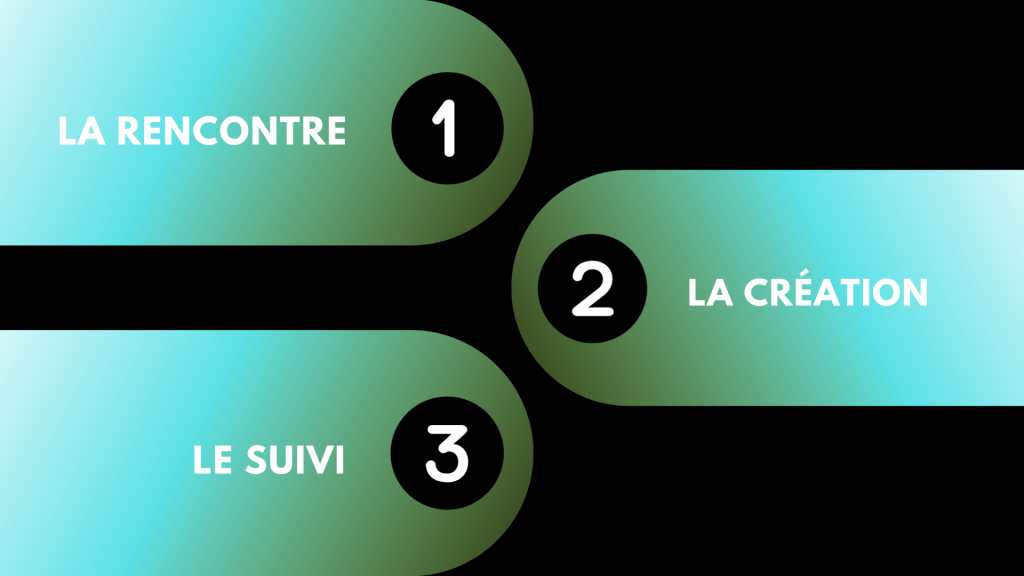 1 – Dans un premier temps, je vous rencontre pour parler de votre projet. J’écoute vos besoins, vos attentes et nous discuterons de ce que vous souhaitez réellement.